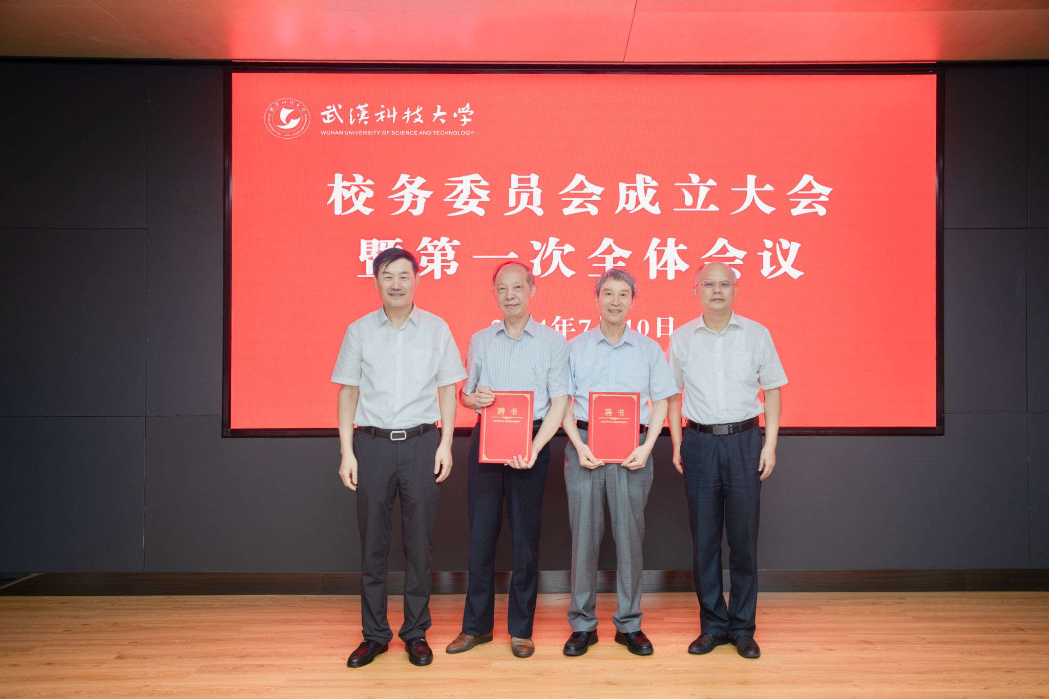 副校长沈季伟宣读《中共yL23411永利官网登录委员会关于成立校务委员会的通知》。yL23411永利官网登录第一届校务委员会由33人组成。徐雁冰为校务委员会主任委员。老领导刘华才、孔建益、盛建龙、吴怀宇,校党委副书记孙国胜,党委常委、纪委书记窦先萍,党委常委、组织部长刘时新,校学术委员会主任张一敏,武汉新城校区建设委员会主任陈志刚为校务委员会副主任委员,另有委员23人。