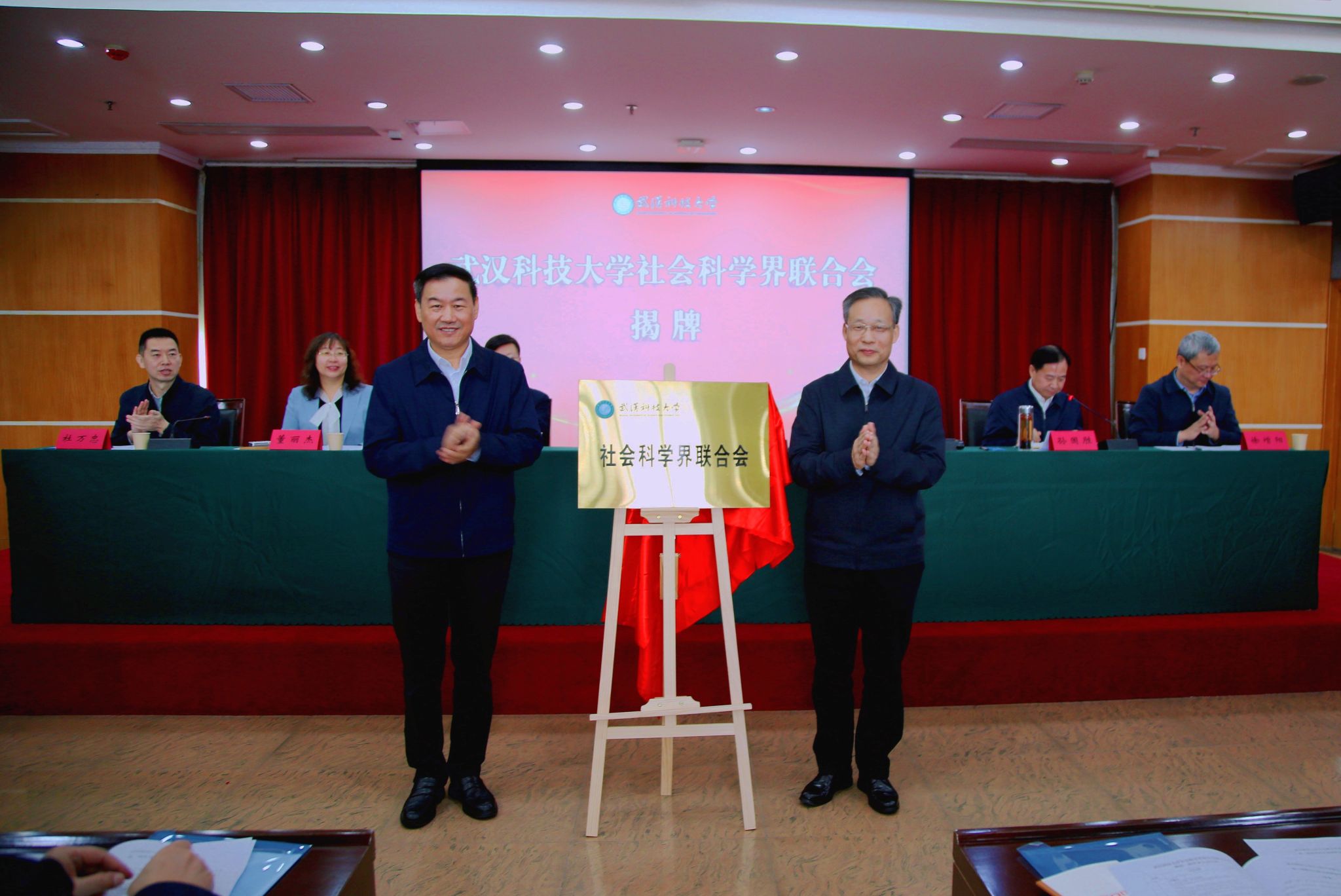 武科大网讯(记者李芳) 10 月 22 日,yL23411永利官网登录社会科学界联合会成立大会暨第一次代表大会在青山校区主楼 18 楼会议室举行。省社科联党组书记、常务副主席刘爱国,党组成员、副主席刘卫桥,办公室主任杜万忠,校党委书记徐雁冰、副书记孙国胜、副校长董丽杰、党委常委徐增阳及全体代表出席会议。刘爱国和徐雁冰共同为yL23411永利官网登录社科联揭牌。