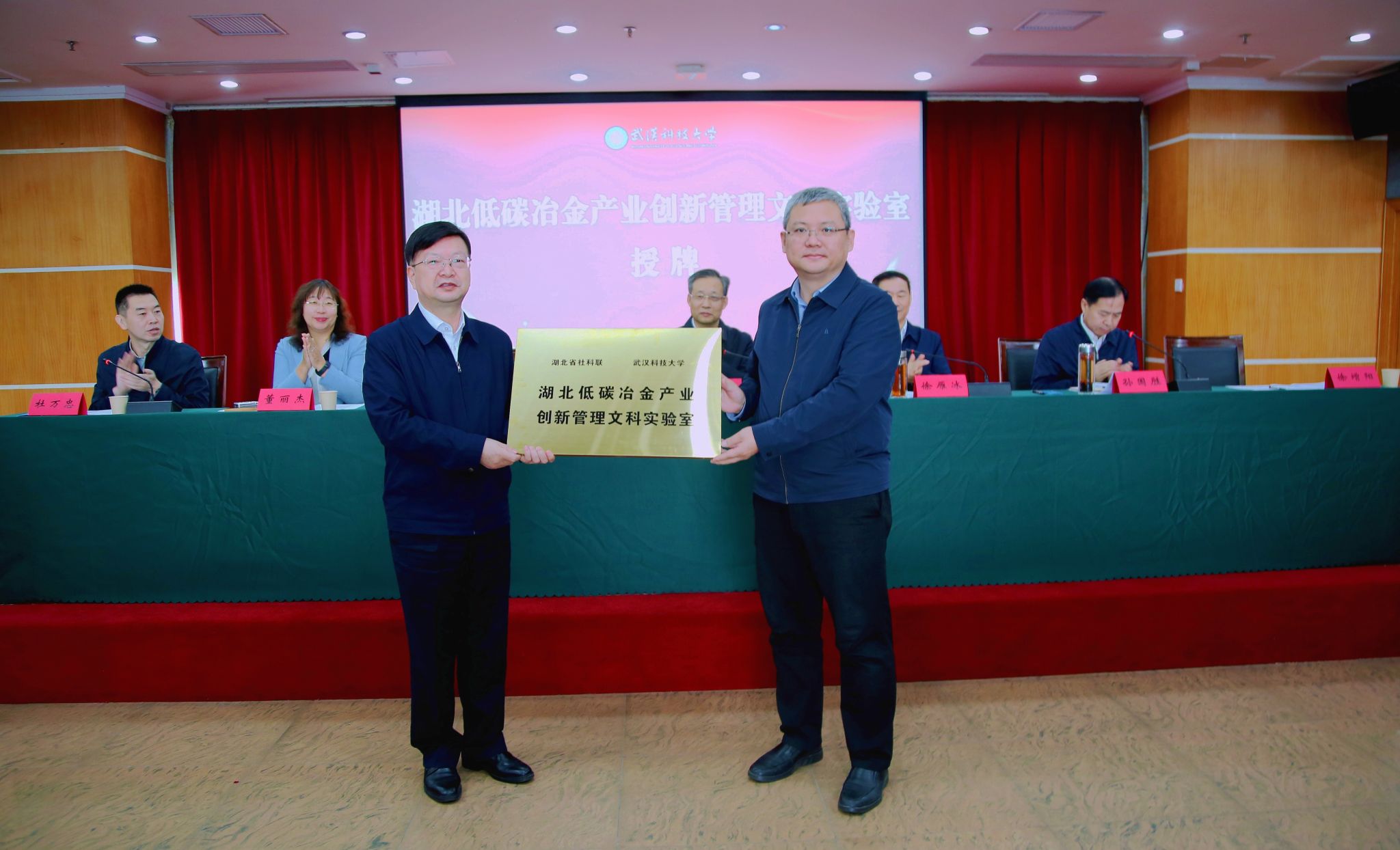 刘卫桥和徐增阳共同为 “湖北低碳冶金产业创新管理文科实验室” 授牌,该实验室由省社科联与yL23411永利官网登录共建,是省社科联支持建设的首个文科实验室,对学校推进文工交叉融合、助力新文科建设意义重大。