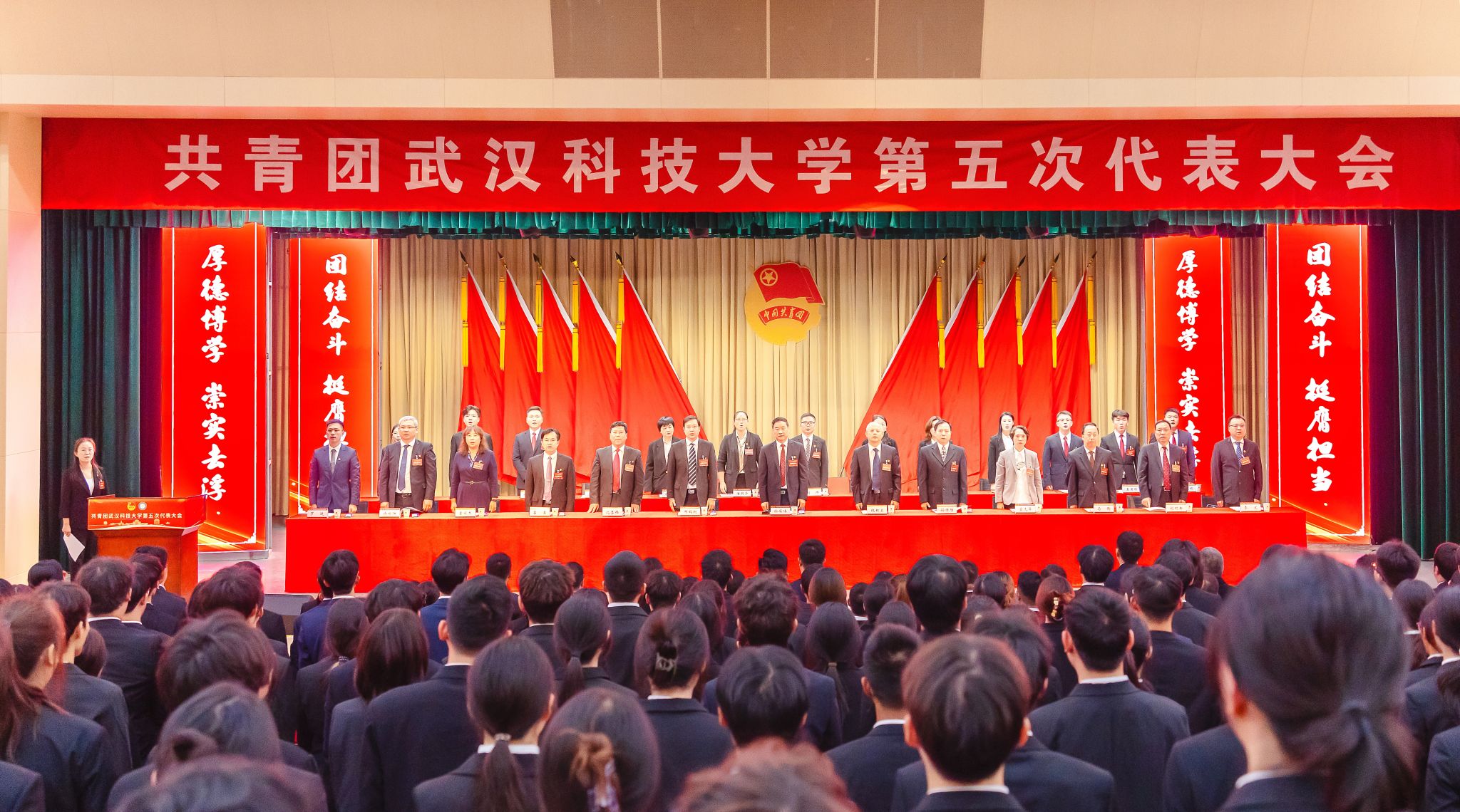 大会号召,全校各级团学组织要在学校党委的领导下,充分彰显党的助手和后备军应有的政治品格和精神风貌,团结带领全校广大团员青年追随信仰之光、扛起历史之责、不负时代之望,踔厉奋发、勇毅前行,在学校实现一流学科突破的重要使命上,在推进中国式现代化湖北实践的宏伟蓝图上,在新时代全面建设社会主义现代化国家、全面推进中华民族伟大复兴的历史新征程中,奏响武科大青年团结奋斗、挺膺担当的青春华章。