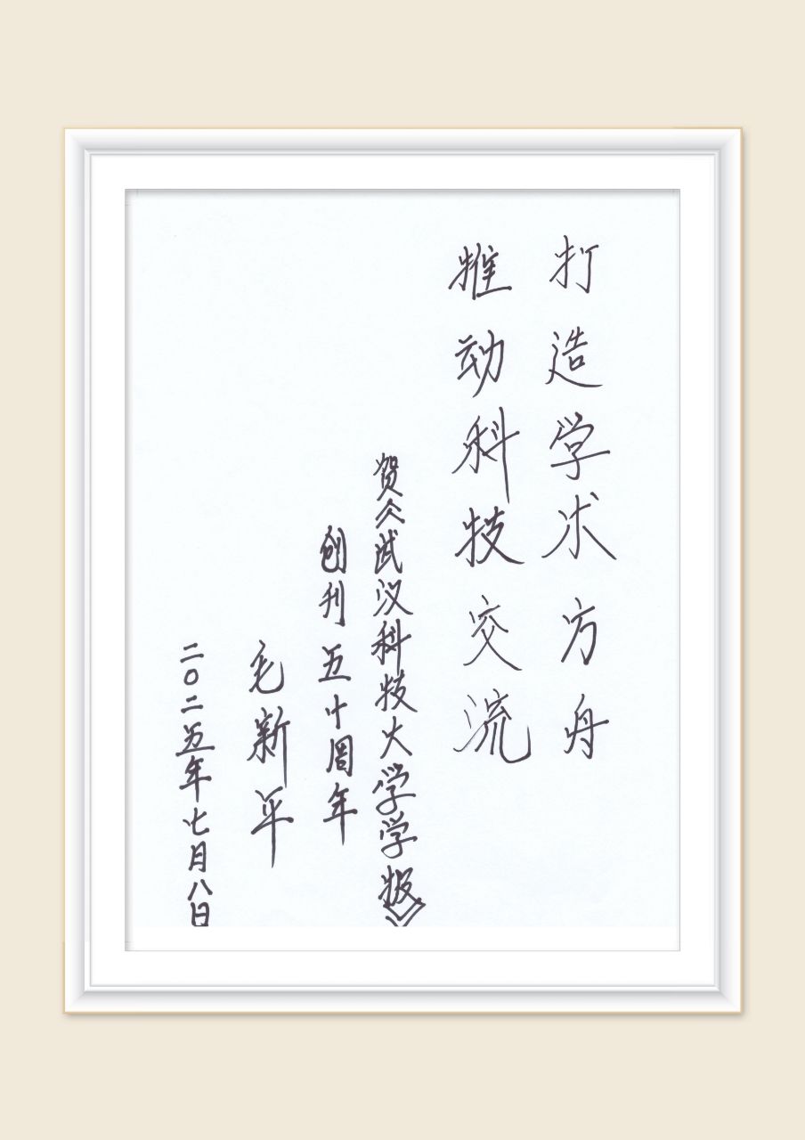 武科大网讯 近日,永利官网1986届金属压力加工专业校友、中国工程院院士毛新平应邀为《yL23411永利官网登录学报》创刊50周年题词“打造学术方舟,推动学术交流”,寄语期刊在知识传播与创新引领中发挥更大作用,为学术共同体建设注入动力。