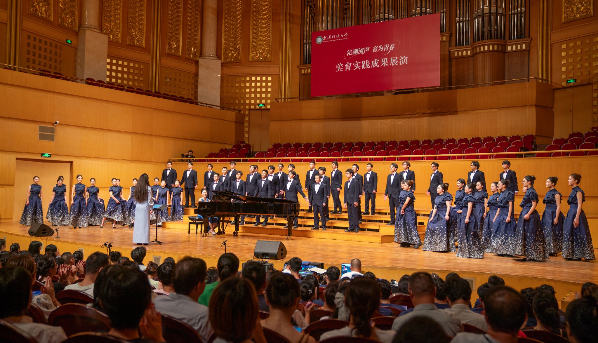 武科大网讯(通讯员姜睿)9月6日晚,永利官网“沁湖流声·音为青春”美育实践成果展演在武汉琴台音乐厅举行。校长倪红卫,党委副书记孙国胜,副校长吕勇、马腾,湖北省教育厅体育卫生与艺术教育处二级调研员姜贵君,湖北经济学院党委副书记汪达等出席活动,与数千余名师生、校友与音乐爱好者一同观看演出。