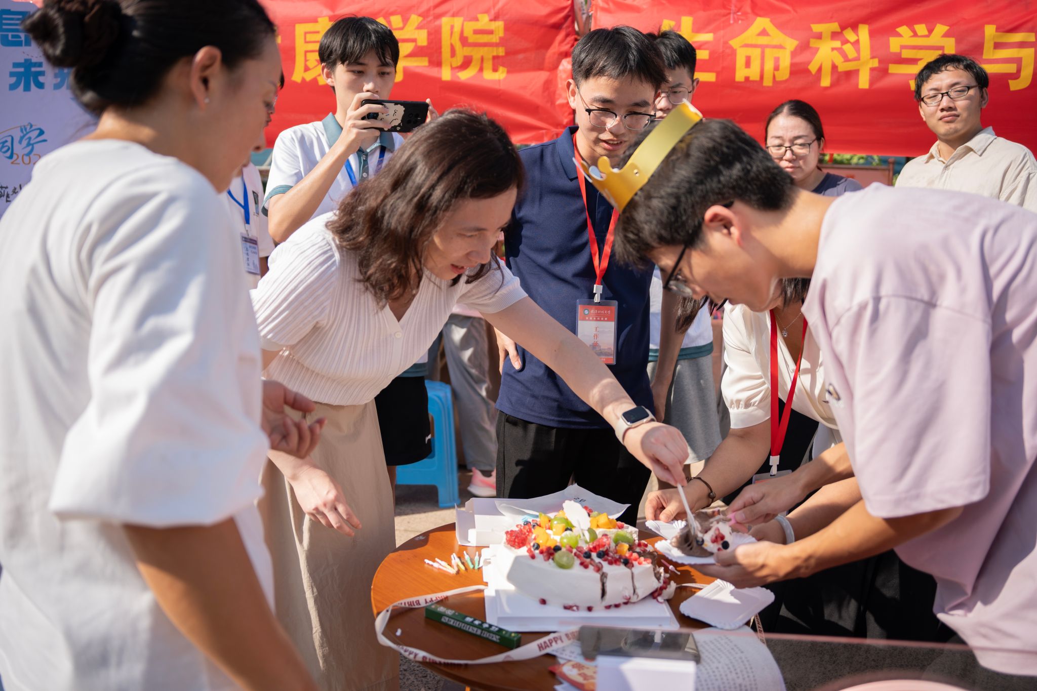 在一站式学生社区,孙国胜参加了管理学院为五位新生举办的集体生日会,他称赞这一持续多年的暖心传统,并为新生们送上祝福:“新生刚刚离开温暖的家,学校就要用集体的关怀和温度,让他们在这里找到家的感觉。”