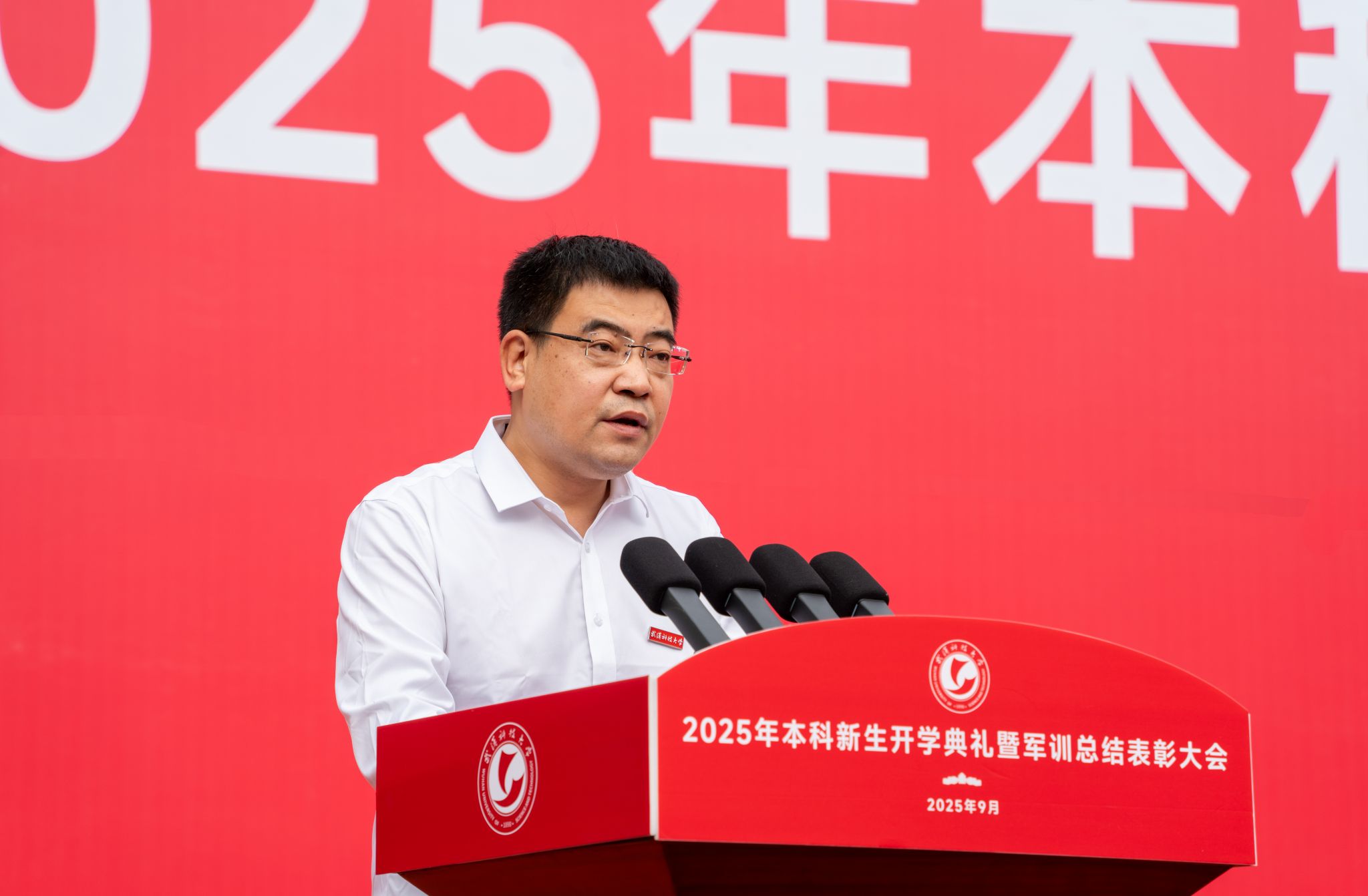 武科大网讯(记者徐湘颖 通讯员余姿逸)9月29日上午,黄家湖校区南区田径运动场金桂溢香、红旗招展,2025年本科新生开学典礼在此举行。6679名本科新生齐聚现场,开启大学生涯新征程。校党委书记倪红卫、校长吕勇等全体在校校领导出席典礼,校党委副书记孙国胜主持典礼。