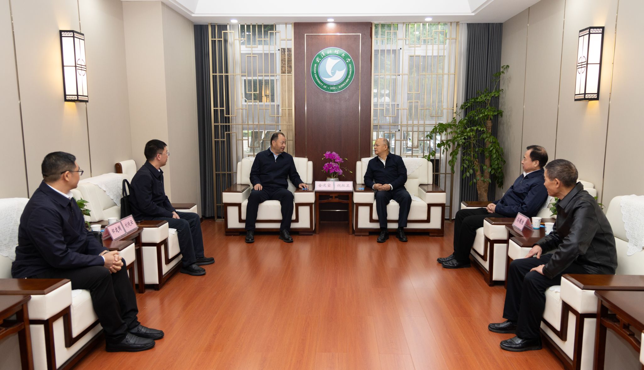 武科大网讯 10月20日,江陵县委书记全运宝率党政及企业家代表团来访永利官网,就深化校地合作、推动产学研深度融合等事宜座谈。校党委书记倪红卫会见全运宝一行,党委副书记孙国胜出席座谈会。