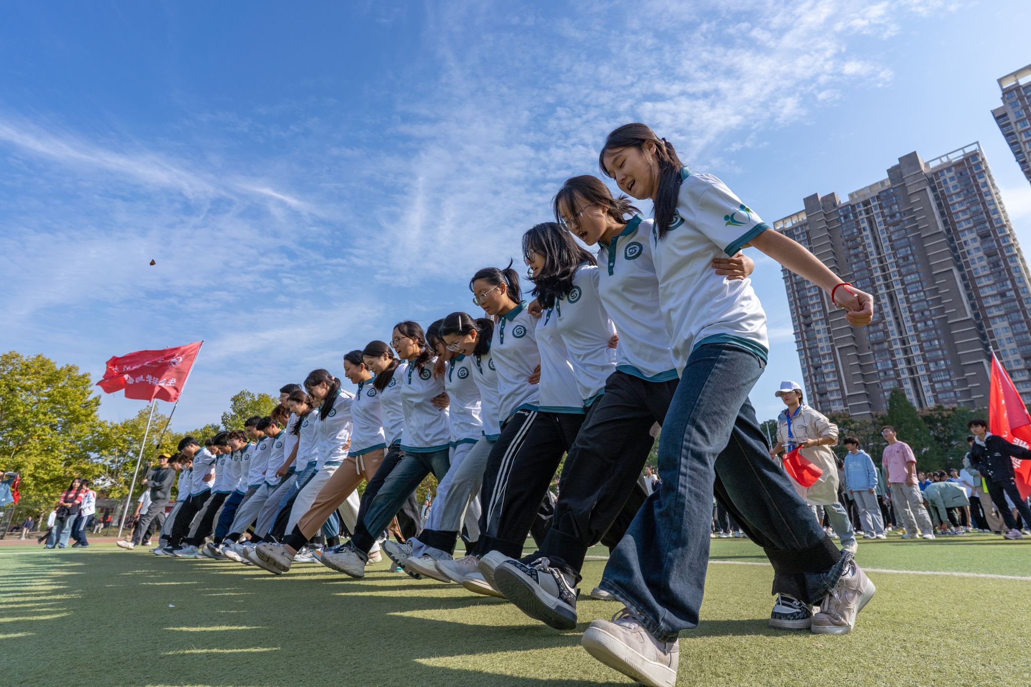 两天半的赛程中,运动场上激情与汗水交织,拼搏与喝彩共鸣。百米跑道上,运动员们如离弦之箭,冲刺瞬间定格了速度与力量;三千米长跑途中,选手们凭借坚韧毅力挑战极限,每一次超越都引发现场阵阵欢呼。田赛赛场同样捷报频传,跳高运动员的轻盈一跃、铅球选手的奋力一掷,都在不断挑战新的纪录。他们用拼搏的身影,完美诠释了“更快、更高、更强——更团结”的奥林匹克格言。