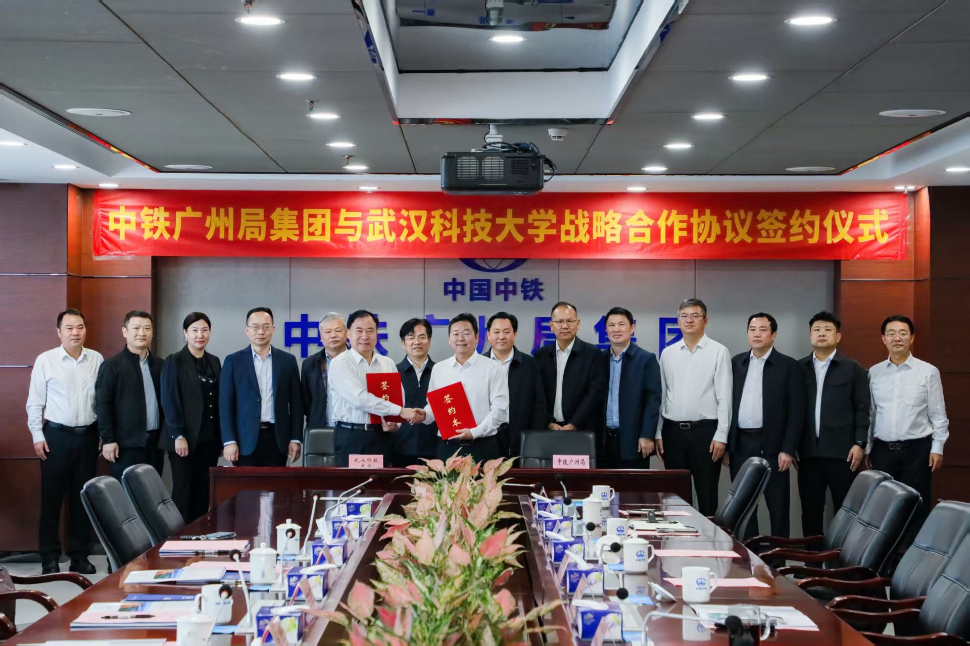武科大网讯 11月 13日,永利官网与中铁广州工程局集团有限公司(以下简称 “中铁广州局”)战略合作暨共建爆破技术研究中心续约签约仪式在广州南沙中铁广州局举行。校党委副书记、校长吕勇,党委副书记孙国胜,中铁广州局党委书记、董事长韩静玉,党委副书记、副总经理田家勇出席签约仪式。