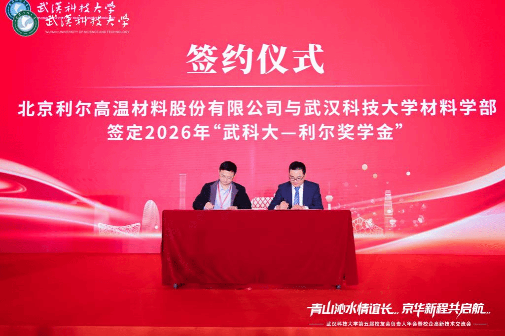 科创合作环节中,学校科学技术发展院成果转化中心副主任官德华介绍了武科大近年优秀科研成果。现场举行了多项科创合作签约仪式,北京利尔高温材料股份有限公司与材料学部签订2026 年 “武科大一利尔奖学金”,北京可瑞生物科技有限公司、中触媒新材料股份有限公司分别与医学部、化工学院达成合作。北京利尔总裁颜浩、可瑞生物董事长谢兴旺等企业代表分享了合作愿景与创新规划。