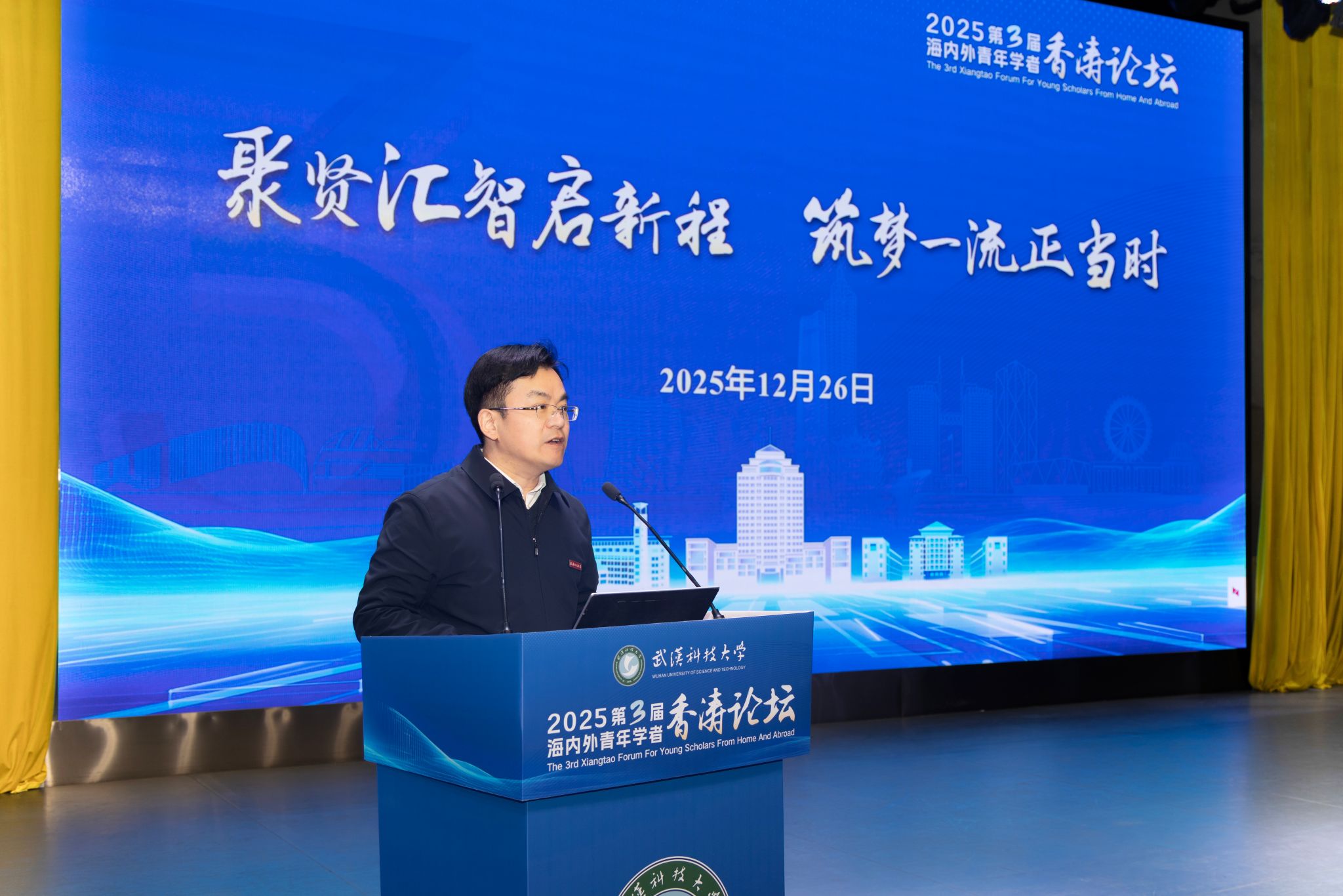 吕勇作题为《聚贤汇智启新程 筑梦一流正当时》的主旨报告。他强调,青年科技人才是赢得未来、重塑格局的关键力量,武科大有信心成为青年人才实现理想的事业平台。他从历史、现实、时代三个维度,介绍了学校127年的深厚底蕴与冲刺“双一流”的强劲势头,承诺学校将通过打造一流的学科平台、成长体系、学术生态和服务保障,实行“一人一策”起点支持、“多维发展”成长支持、“全程护航”服务支持,以最大的诚意托举每一位青年才俊的梦想。