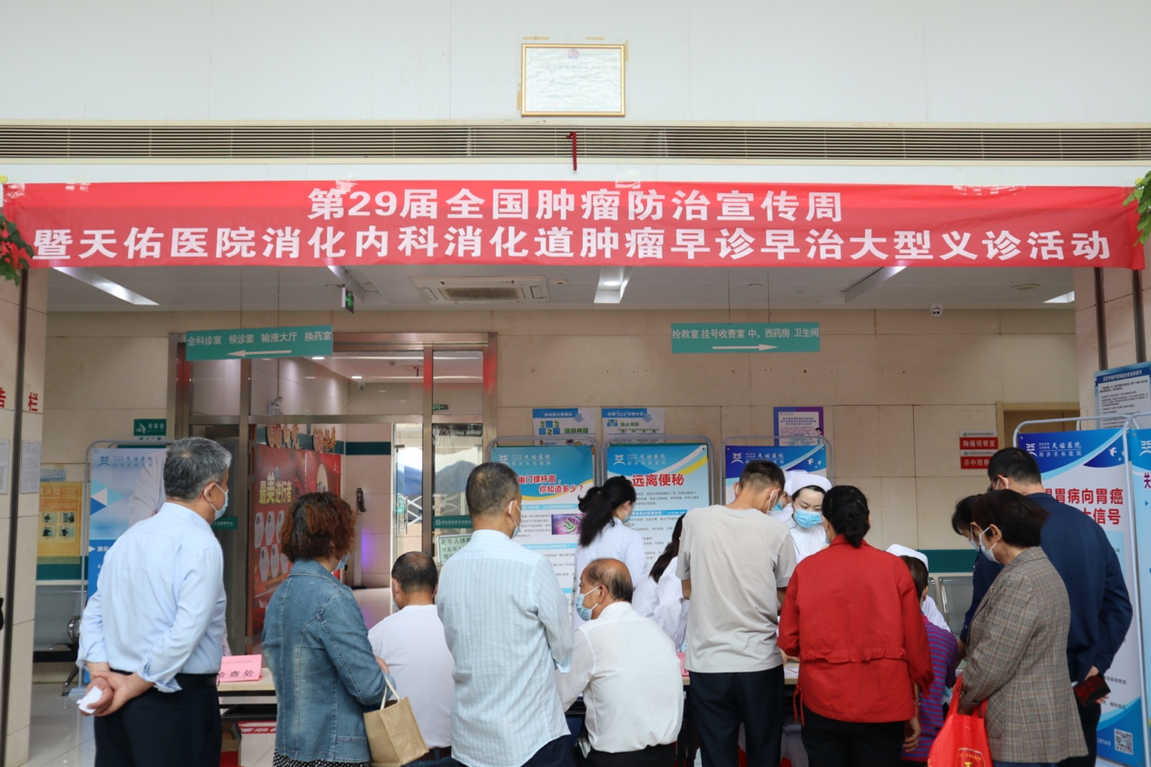 2023年4月15日-21日是第29个全国肿瘤防治宣传周。yL23411永利官网登录附属天佑医院(同济天佑医院)消化内科作为国家消化道早癌防治中心联盟成员之一,为高质量推动健康中国癌症防治专项行动,提高全社会癌症防控意识,营造全民防癌抗癌的良好氛围,于4月19日成功举办了第29届全国肿瘤防治宣传周暨“天佑医院消化内科消化道肿瘤早诊早治”宣传义诊活动。