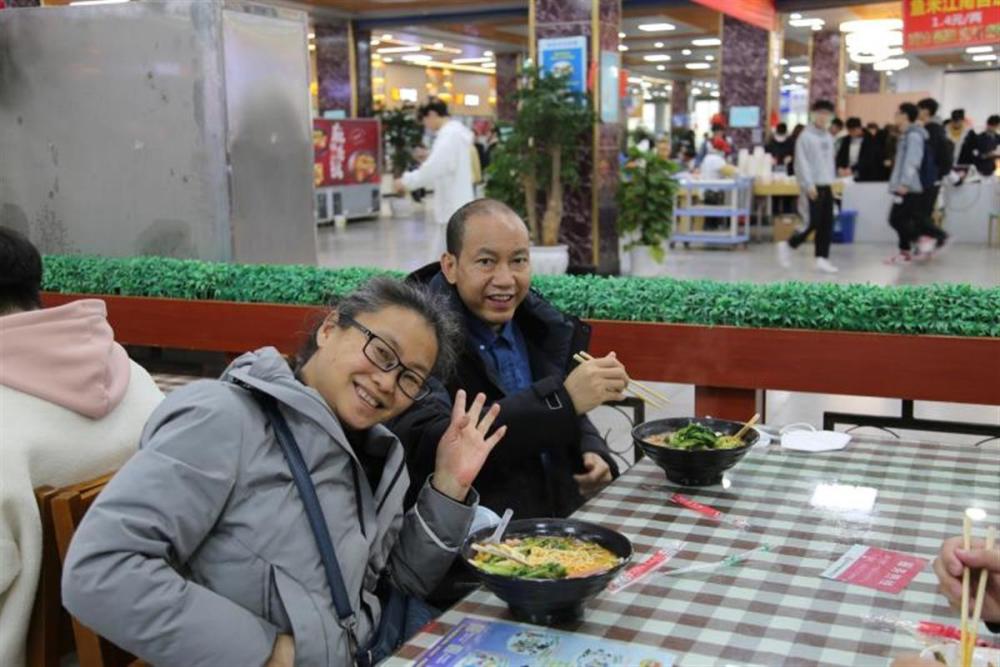 王勤好(右)及其妻子在yL23411永利官网登录食堂吃饭