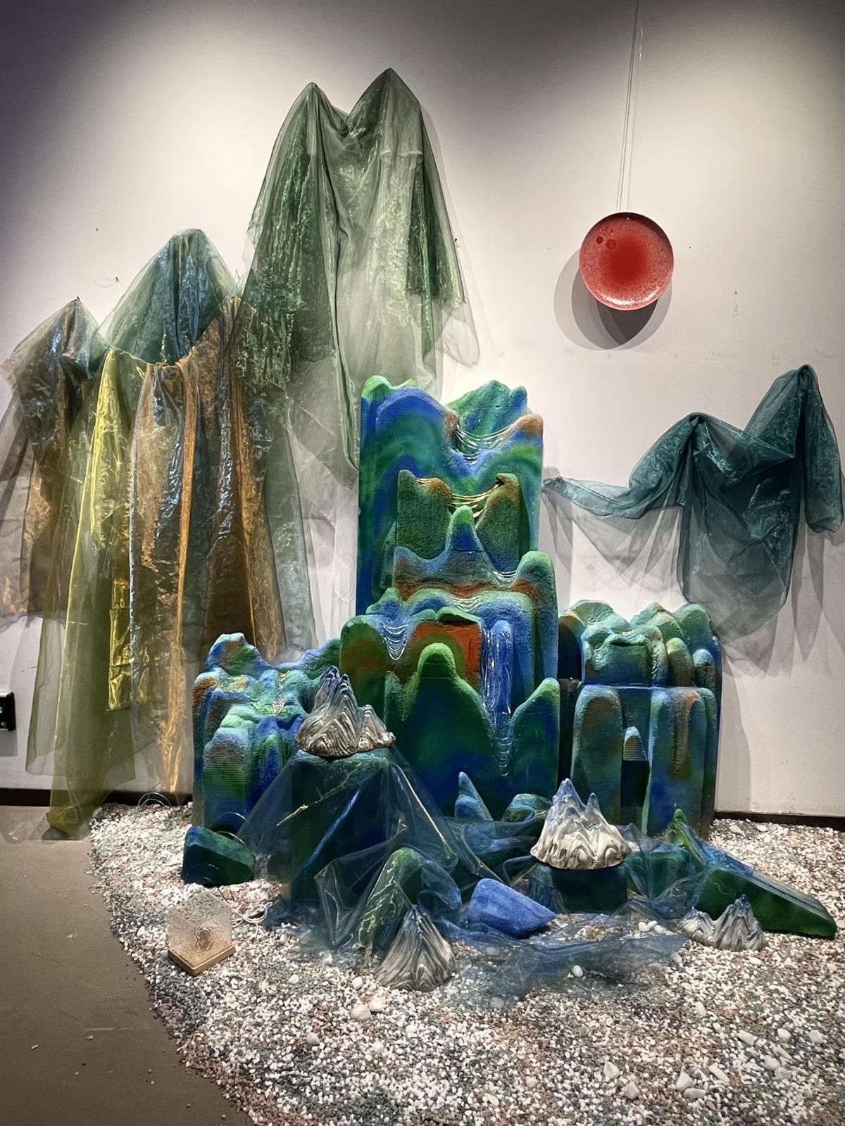 装置作品《织梦》,呈现新式青绿山水之姿,表达对现实生活的热爱