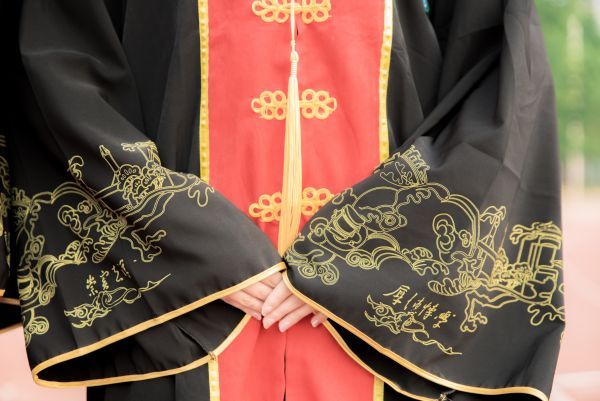 记者:怎么想到要把学士服设计成中式风的?有没有非遗或者手绣的成分在里面?