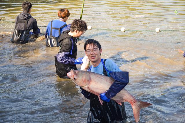 捕鱼中,资源与环境工程学院大一学生张鑫以一条30.2斤重的大鱼摘得“捕鱼王”称号。最终,陈炳坤惜败“捕鱼王”,但他说:“人生就和捞鱼一样,鱼会溜走,机会也会流失,但只要我不放手,它终究还是会回到我手里。”