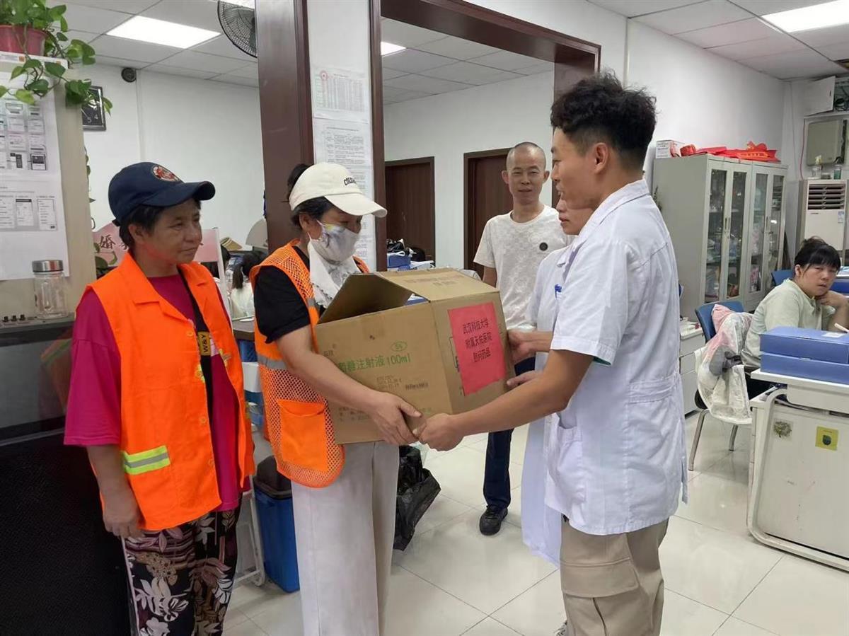 该院药学部准备了清凉解暑、补液止泻、风热感冒等与夏季常见病相关的药品,送到了环卫工人们的手中。易蕾药师叮嘱环卫工人:“最近天气炎热,如果感觉到不舒服,可以喝些藿香正气水,以免症状加重。”陶杨药师补充道:“防暑药品大多是中成药,需要适量,更需要对症,按照说明书或在医生指导下使用。”