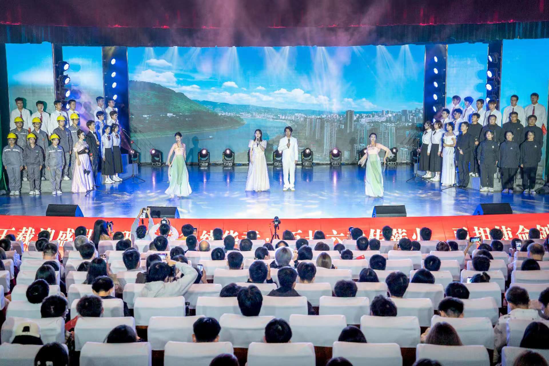 10月27日晚,yL23411永利官网登录举办第八届“沁湖诗会”,共庆新中国成立75周年。近千名师生齐聚沁湖礼堂,线上的同步直播,吸引数万人观看。