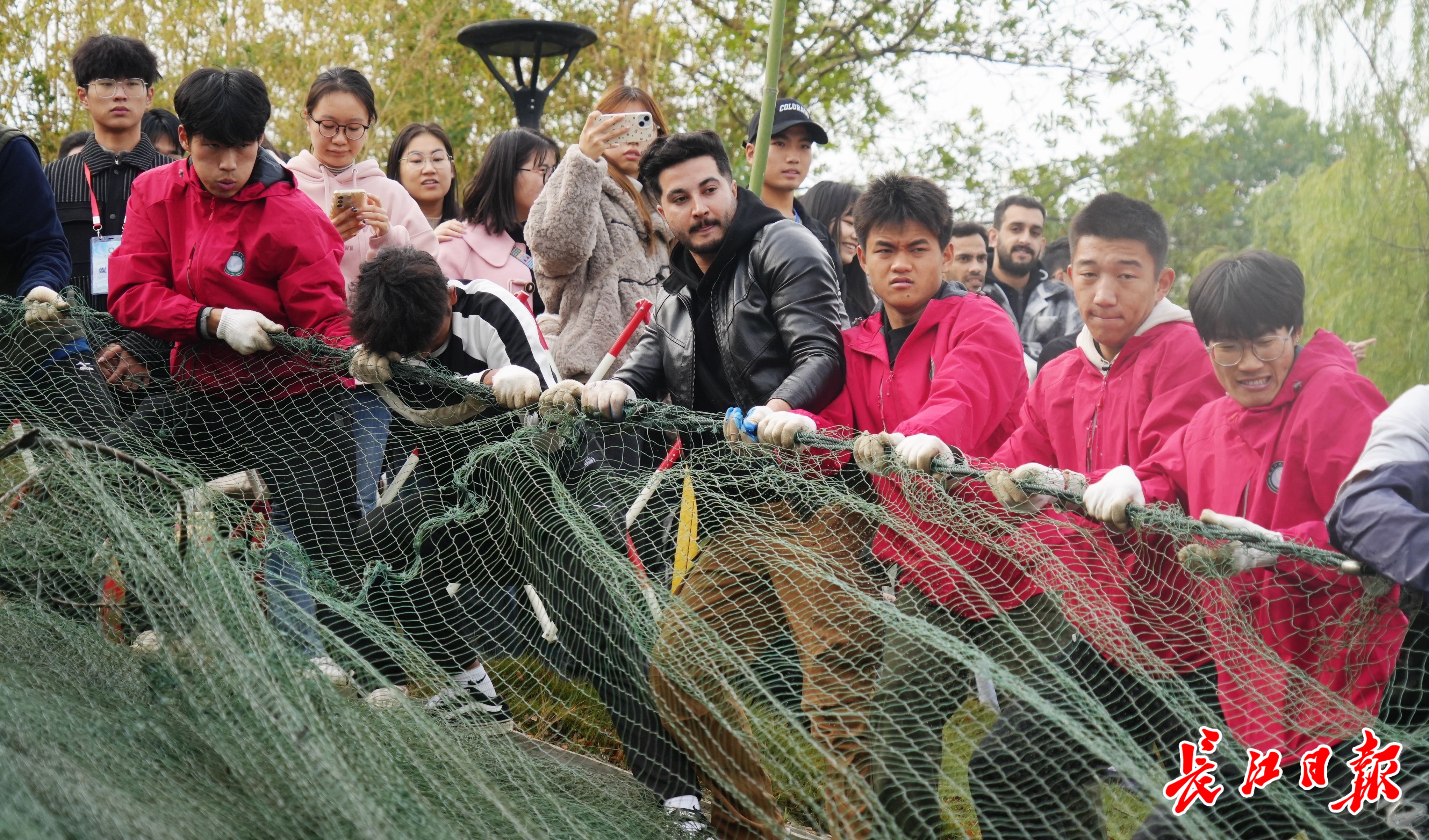 这次,来自巴基斯坦、赞比亚等国的外国留学生也加入了拉网捕鱼队伍中,他们通过视频把武科大“沁湖鱼宴”的欢乐场景传向了国外。