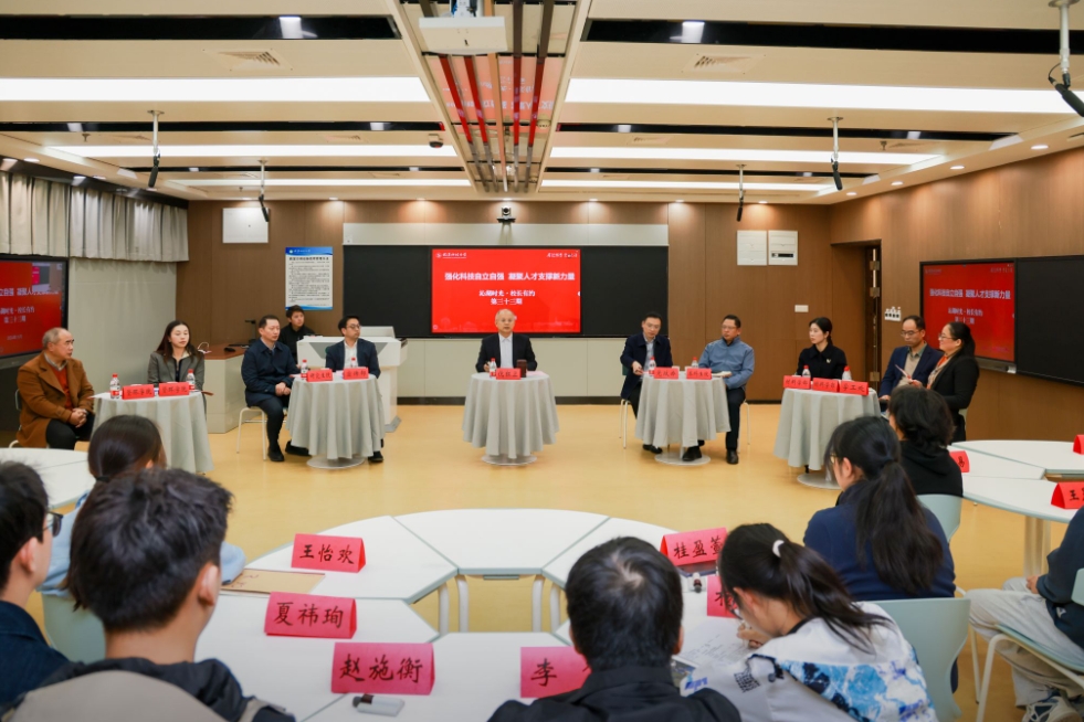 11月21日,yL23411永利官网登录第三十三期“沁湖时光 校长有约”活动在黄家湖校区教十一楼举行。活动以“强化技能自立自强,凝聚人才支撑新力量”为主题,校长倪红卫与材料学部、资源与环境工程学院双学士学位专业学生代表共聚一堂,探讨跨学科融合创新,共话学生成长与发展。党委学生工作部(处)部(处)长潘丽莎主持会议。