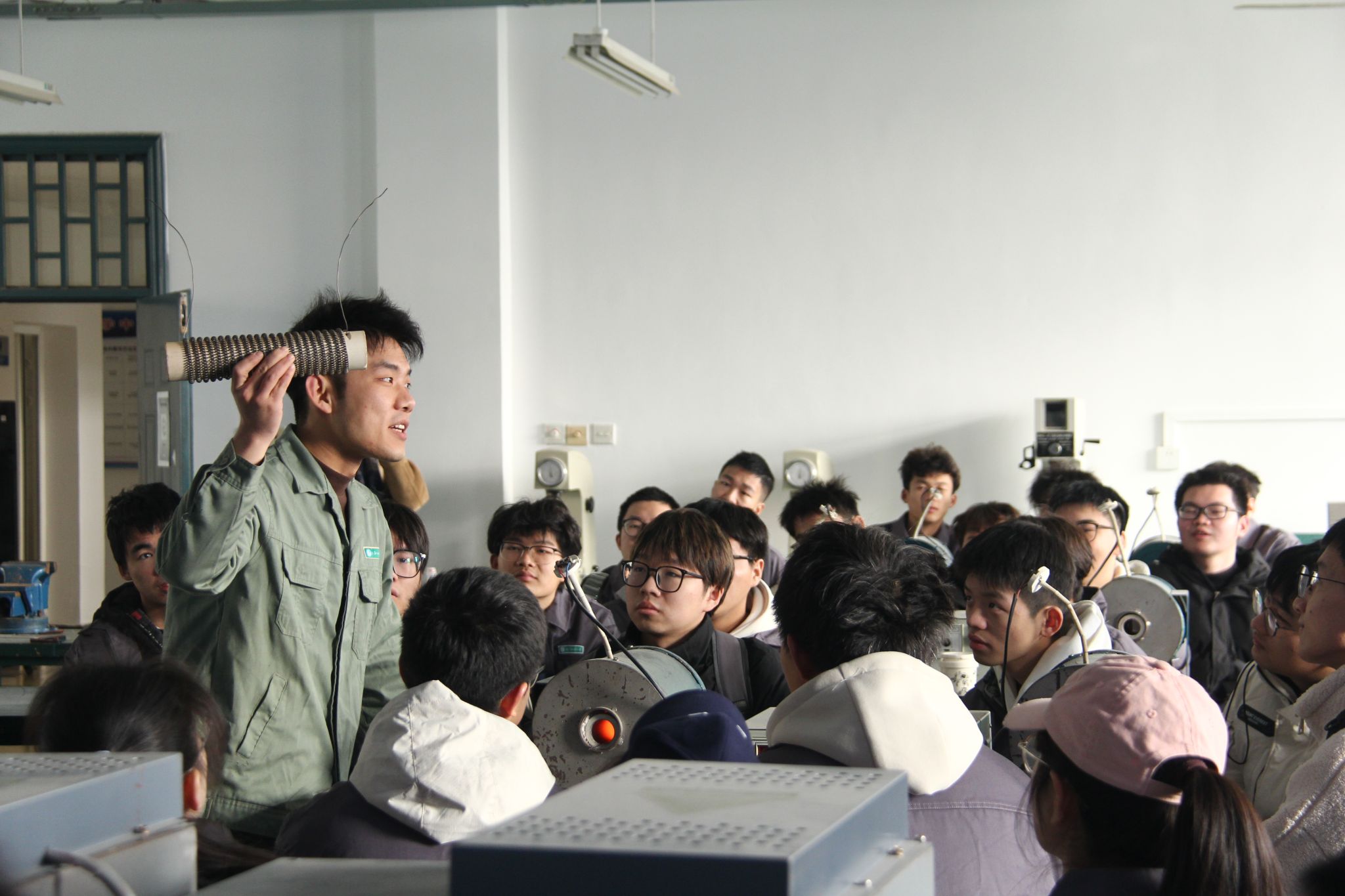 工训实践创新中心里,学生们个个铆足了劲磨小锤,一大早便响起叮叮当当的忙碌声。车铣机床旁,学生们亲自操作更换顶针;热处理焊接炉中,弹簧在淬火中成型;铸造模具前,工具挥舞;数控教学区,指令逐渐熟练……“无论如何,大家一定要规范操作,首先保证安全!”工训中心的教师们反复叮嘱学生注意安全。
