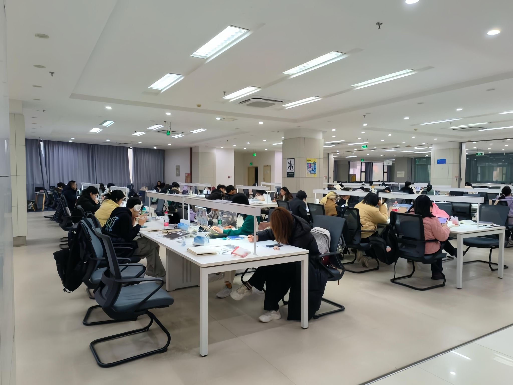 图书馆里,学生们早早投入学习,专注的神情仿佛无声的宣言,预示着他们离目标更近了一步。